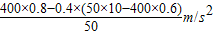 由牛顿第二定律:F-μmg=ma1即400-μ×50×10=50×a1 ②