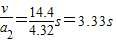 在拉力作用下以a2=4.32m/s2做初速度为0的匀加速直线运动经过时间t速度达到v;