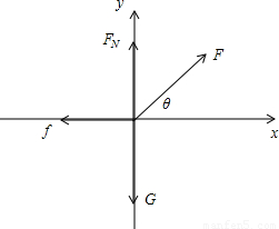 建立如图坐标系,在两种情况下对木箱进行受力分析有:木箱都受四个力作用:重力G、弹力FN、摩擦力f和推力F