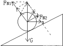 解:以小球为研究对象,进行受力分析如图,将FN1与FN2合成,其合力与重力等大反向,则在挡板转动时,挡板给球的弹力FN2与斜面给球的弹力FN1合力大小、方向均不变,其中FN1的方向不变,作辅助图如图,挡板转动过程中,FN2的方向变化如图中a、b、c的规律变化,为满足平行四边形定则,其大小变化规律为先减小后增大,其中挡板与斜面垂直时FN2最小.斜面对球的作用力FN1一直减小,当挡板水平时,斜面对球的支持力最小,为零.