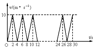 在光滑的水平面上,一个质量为200g的物体,在1N的水平力作用下由静止开始做匀加速直线运动,2s后将此力换为相反方向的1N的力,再过2s将力的方向再反过来……这样物体受到的力大小不变,而力的方向每过2s改变一次,求经过30s物体的位移.
