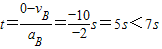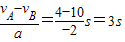 有vA=vB+aBt,则t=