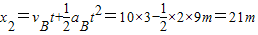 则△x=x2+s-x1=21+7-12m=16m