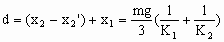 设初始的下边弹簧压缩了x2,拉上边弹簧后,下边和上边弹簧的压缩和伸长量分别是 对下边弹簧 对上边弹簧 解①、②和③联立方程,得 则A端提高距离 |