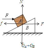 解答:解:(1)对A:F作用在水平方向上,所以对竖直方向上的力没有影响,因为A处于平衡状态,故B对A的作用力在竖直方向上的分力大小等于GA