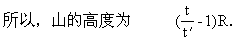 在海平面校准的摆钟,拿到某高山山顶,经过t时间,发现表的示数为t′,若地球半径为R,求山的高度h(不考虑温度对摆长的影响).