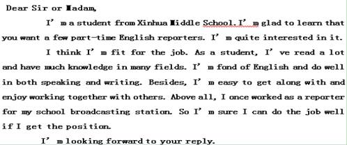 假设你是新华中学的学生李华,得知某英文报招聘兼职记者,你有意应聘,请按下列要点给报社写一封自荐信。