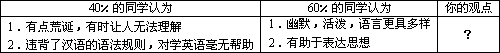 However, the rest of the students are fond of it.They think what they say will sound humorous, which makes the language more lively.Moreover, it is of special help for them to express themselves freely.