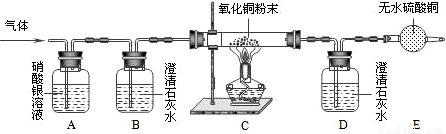 | 试 剂 | 硝酸银溶液 | 澄清石灰水 | 氧化铜粉末 | 澄清石灰水 | 无水硫酸铜 |
