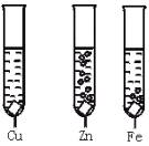 在三支试管中,分别加入等质量的铁、锌、铜三种金属,再分别加入足量的稀硫酸,其中不反应的是 ① ,反应产生气体速度最快的是 ② ;产生气体最多的是 ③ ,铁溶于稀硫酸后,溶液呈 ④ 色.