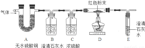 (3)D中红色粉末是 (填化学式),实验现象 。