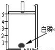 测定空气中氧气所占的体积分数,某同学设计了如右图实验,在一个耐热活塞的底部放一小块(足量)白磷,然后迅速将活塞下压,可以观察到的现象为 ;冷却至原来温度时,慢慢松开手,活塞最终将回到刻度 处,试回答白磷燃烧的原因 ;由此实验可以得出的结论是 .