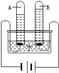 右图所示的是电解水实验装置。通电一段时间后,在两个试管中分别收集到气体A和气体B。请回答:![]()