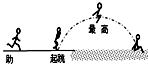 如图所示是跳远运动的几个阶段,在助跑阶段运动员动能
