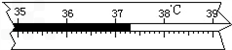 如图所示是体温计的一部分,这种体温计是根据______的性质制作的.其测量范围是______.他的体温是______℃.