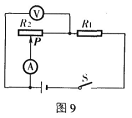 如图9所示电路,电源电压不变,闭合开关S,电压表、电流表均有示数,将滑动变阻器的滑片P向左移动,一会儿发现电压表和电流表示数的比值变小,则下列判断中正确的是( )