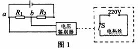 如图1所示电路是在环境温度为10℃左右的条件下工作的某自动恒温箱原理简图. 箱内电阻Rl为定值电阻,R2为热敏电阻,其阻值随温度变化的图线如图2所示,电源电压为12V.当电压鉴别器的两接入点a,b间的电压Uab小于2V时,鉴别器将使开关S接通,使恒温箱内的电热丝通电而发热,从而使箱内温度升高;当Uab大于4V时,鉴别器将使S断开,停止加热.则