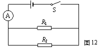 .在图12所示的电路中,电源电压保持不变,电阻R2的阻值为15欧。闭合电键S后,电流表的示数为1安,通过电阻R2的电流为0.4安。求: