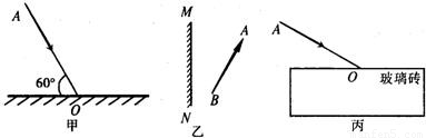 (1)如图甲所示,AO是一条与平面镜成60°角的入射光线,请在图中画出反射光线并标出反射角度数.