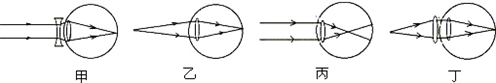 ②下列四个选项中,能正确表示小莉同学近视眼成像和矫正情况的是( )