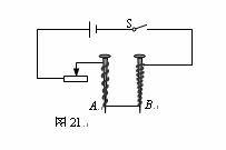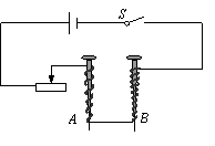 为了探究电磁铁的磁性强弱与哪些因素有关,某同学使用两个相同的大铁钉绕成电磁铁A和B,还找来一些大头针进行实验,电路如图所示。