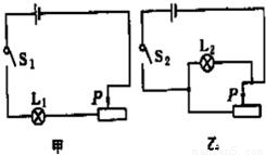如图所示的甲、乙两个电路中,闭合开关Sl和S2,都向右移动滑动变阻器的滑片p时,关于灯泡L1和L2的亮度变化情况是( )