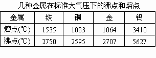 | 生产和生活中使用的某些合金,是不同种金属在熔化状态下融合后得到的.下表所列出的几种金属中,难以与其他金属形成合金的是( ) 几种金属在1标准大气压下的熔点和沸点