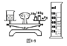 某同学在“测定盐水密度”的实验中,写出下列的步骤,请你在括号内填入序号,并看图1-9填好下面的表格。
