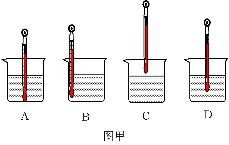 使用温度计时,首先要观察它的量程和认清它的 。小强在用温度计测量烧杯中液体温度时读取了四次数据,每次读数时温度计的位置如图7甲所示,其中正确的是 。图乙、丙分别是测冰和水时的温度计示数,那么冰的温度是 ℃,水的温度是____℃。