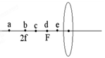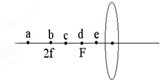 小明在做“探究凸透镜成像规律”实验,其实验装置的示意图如图所示,a,b,c,d,e是主光轴上的五个点,F点和2f点分别是凸透镜的焦点和二倍焦距处。在a,b,c,d,e这五个点中