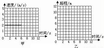 一辆电动玩具车作匀速直线运动,它的速度-时间图象如图(甲)所示,请在图(乙)上画出它的路程-时间图象.