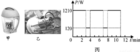 中间部位是一个带动刀头电动机,用来将原料进行粉碎打浆;外部是一个金属圆环形状的电热管,负责对液体加热煮沸。上表是这个豆浆机的主要技术参数;如图丙所示是豆浆机正常工作做一次豆浆的过程中电热管和电动机交替工作的“P-t”图像。