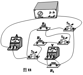 在如图所示电路中,电源两端的电压保持不变,当闭合开关S1、S3,断开开关S2时,电流表的示数为1.2A;当闭合开关S1、S2,断开开关S3时,电流表的示数为0.3A;当闭合开关S2,断开开关S1、S3时,电流表的示数为0.15A。关于此电路工作情况的分析,下列说法中正确的是( )