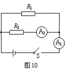 如图7所示的电路中,电源电压2V保持不变,电阻R1=5Ω,R2=10Ω,当开关S断开时,电流表A1的示数是 A,当开关S闭合时,电流表A2的示数将增大 A,R1和R2的电功率之比是 。