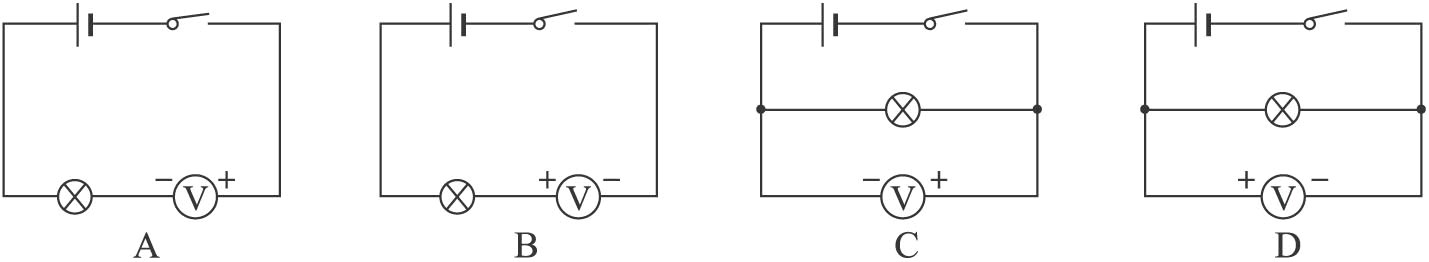 .用电压表测小灯泡两端电压,如图所示的四种电路中,正确的是:
