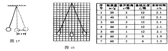 在观察如图17所示小球摆动时动能和势能转化的实验中,小涛发现小球每摆一个来回的时间似乎都相同。于是他产生了猜想,小球来回摆动一次所用时间t: