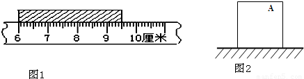 cm.②木块A在40牛水平向左的拉力F作用下运动,请用力的示意图在图2中画出木块受到的拉力F.