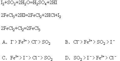C.Fe2+>I―>Cl―>SO2 D.SO2>I―>Fe2+>Cl―