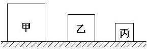 如图所示,甲、乙、丙三个实心正方体分别放在水平地面上,它们对水平地面的压强相等。甲、乙、丙对地面压力最大的是 (19) 。如果在三个正方体上分别放一个质量相等的铜块,则三个正方体对水平地面的压强最大的是 (20) 。(均选填“甲”、“乙”或“丙”)