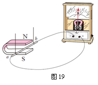 如图19所示,小东用导体ab、电流表及导线组成了闭合电路,探究“什么情况下磁可以生电”,并将实验中观察到的现象记录在下表中。根据实验记录可知: