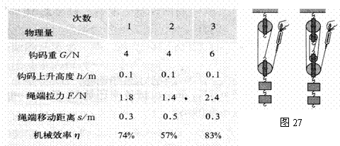 53、如图20所示,用甲,乙两个滑轮组将物重均为G的物体提