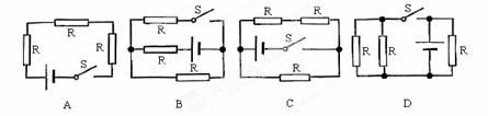 (’05北京丰台)在图所示的四个电路图中,开关S闭合后,三个电阻都是并联的是