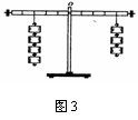 如图3所示,轻质杠杆支点为O,在已调平的杠杆两端分别挂上一些钩码,每一个钩码的质量相等,杠杆恰好在水平位置平衡,如果两边各拿走一个钩码,杠杆将
