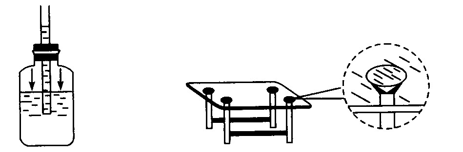 如左下图为某同学自制的水气压计.取一个瓶子,装上适量带色的水.取一根两端开口的细玻璃管,在它上面画上刻度.使玻璃管穿过橡皮塞插入水中,从管子上端吹人少量气体使瓶内气体压强大于大气压强,水沿玻璃管上升到瓶口以上.如果将气压计从楼下拿到楼上,管内水银柱的高度将如何变化?