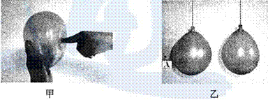 (2)图乙中两只气球自由悬挂在空中,用粗吸管对准A点沿垂直于纸面方向用力吹气,可观察到两气球
