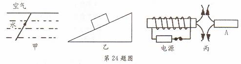 (2)如图乙所示,光从水中斜射入空气,请准确作出反射光线的方向、大致作出折射光线的方向.