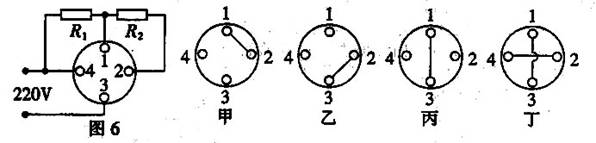 如图6所示,是某电器内部的电路结构图,R1、R2为阻值相同的电热丝.不同的连接方式其发热功率不同下列说法正确的是