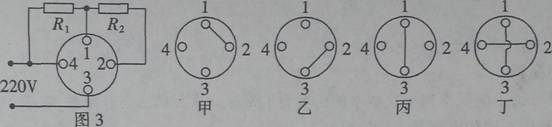 如图3所示,是某电器内部的电路结构图,R1、R2为阻值相同的电热丝.不同的连接方式其发热功率不同.下列说法正确的是