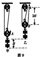 在测“滑轮组机械效率”的实验中,瑞瑞同学在与动滑轮相切的细绳上作一标记A(如图9甲所示),然后用大小为F的拉力匀速竖直向上提升总重为G的钩码,当钩码上升的高度为H时,瑞瑞同学在与动滑轮相切的细绳上作另一标记B,井测得AB两点间的距离为2H(如图9乙所示).(不计摩擦与绳重)