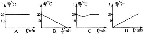 当室内温度为20℃时,用浸有少量酒精的棉花包住温度计的玻璃泡,随着酒精的迅速蒸发,下列哪幅图基本反映了温度计的示数随时间的变化 ( )
